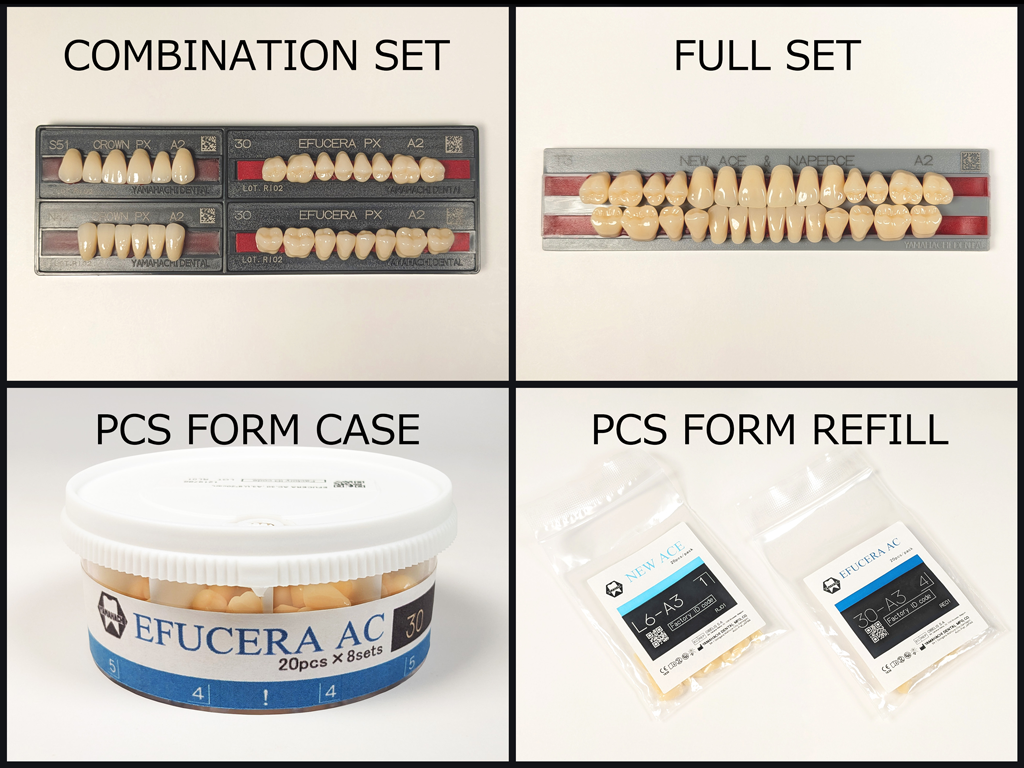 YAMAHACHI artificial teeth are also available in various packing styles below:
